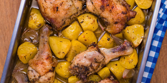 Greek roasted chicken with potatoes, a traditional recipe that gives crispy crust, tender meat, and juicy, golden-baked potatoes. An absolute crowd-pleaser for your weekend dinner!